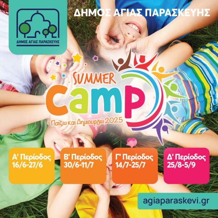 Ο Δήμος Αγίας Παρασκευής υλοποιεί και φέτος το Θερινό Πρόγραμμα Δημιουργικής Απασχόλησης και Αθλητικών Δραστηριοτήτων-Summer Camp, «Παίζω και Δημιουργώ 2025» με στόχο να προσφέρει στα παιδιά μια ποιοτική πρόταση απασχόλησης, κατά τη θερινή περίοδο.