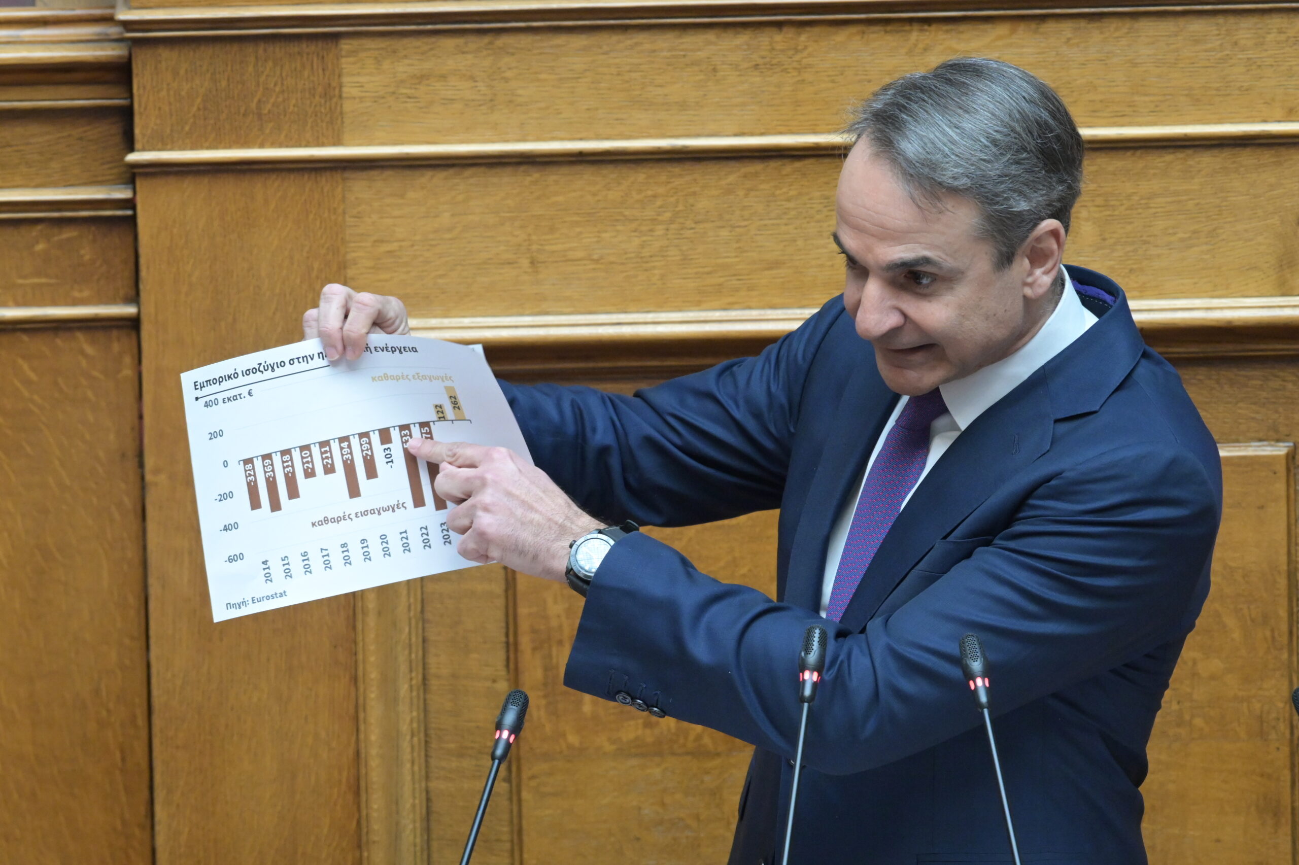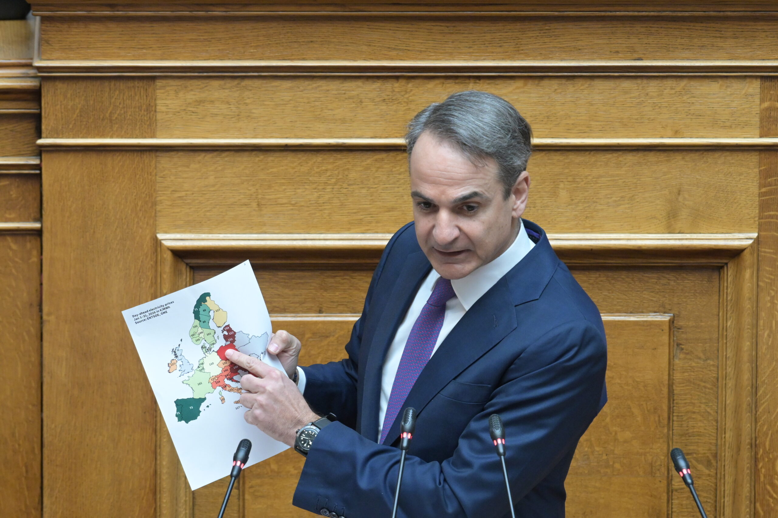 Ο Πρωθυπουργός Κυριάκος Μητσοτάκης απάντησε ότι η Ελλάδα έχει τιμές ρεύματος χαμηλότερες από τον ευρωπαϊκό μέσο όρο, ότι εφαρμόστηκαν επιδοτήσεις και φορολόγηση υπερκερδών για την προστασία των καταναλωτών και ότι η ενεργειακή πολιτική ενισχύει την παραγωγή από ΑΠΕ και τη διασυνδεσιμότητα της χώρας. Υποστήριξε πως η ενεργειακή ασφάλεια έχει βελτιωθεί σημαντικά τα τελευταία χρόνια. Η συζήτηση χαρακτηρίστηκε από υψηλούς τόνους, αιχμές για ευθύνες του παρελθόντος και έντονη πολιτική αντιπαράθεση.