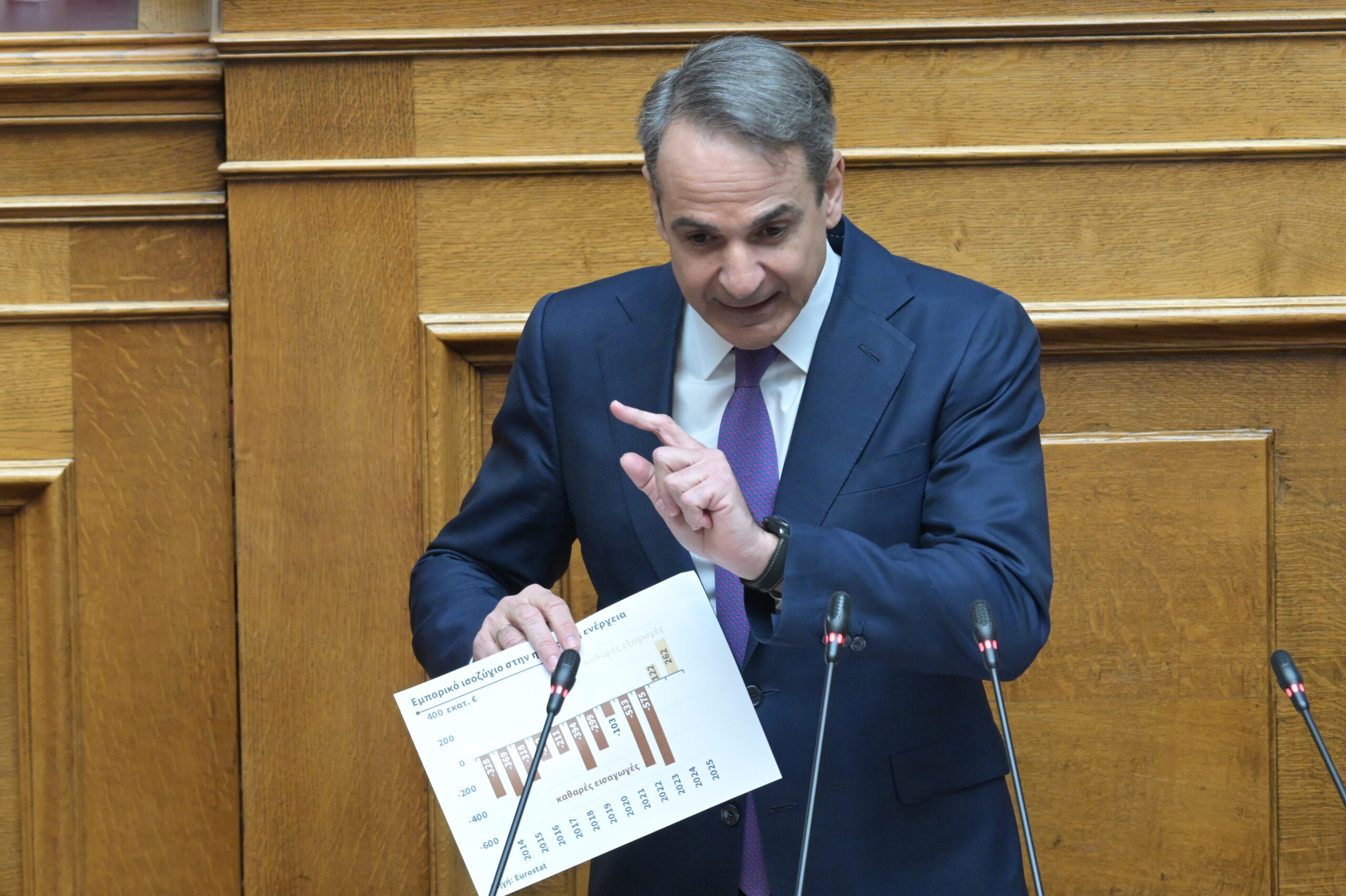 Στη Βουλή των Ελλήνων, ο πρόεδρος του ΠΑΣΟΚ Κίνημα Αλλαγής, Νίκος Ανδρουλάκης, κατηγόρησε την κυβέρνηση ότι η ενεργειακή της πολιτική τροφοδοτεί την ακρίβεια, επιβαρύνει νοικοκυριά και μικρομεσαίες επιχειρήσεις και δεν διασφαλίζει επαρκώς την ενεργειακή θωράκιση της χώρας. Μίλησε για ανάγκη εθνικού σχεδίου με σαφές χρονοδιάγραμμα, ουσιαστικό έλεγχο της αγοράς ηλεκτρικής ενέργειας και αξιοποίηση της συμμετοχής του Δημοσίου στη ΔΕΗ για συγκράτηση τιμών. Έθεσε επίσης ζήτημα στρατηγικών υποδομών και μακροπρόθεσμου σχεδιασμού.