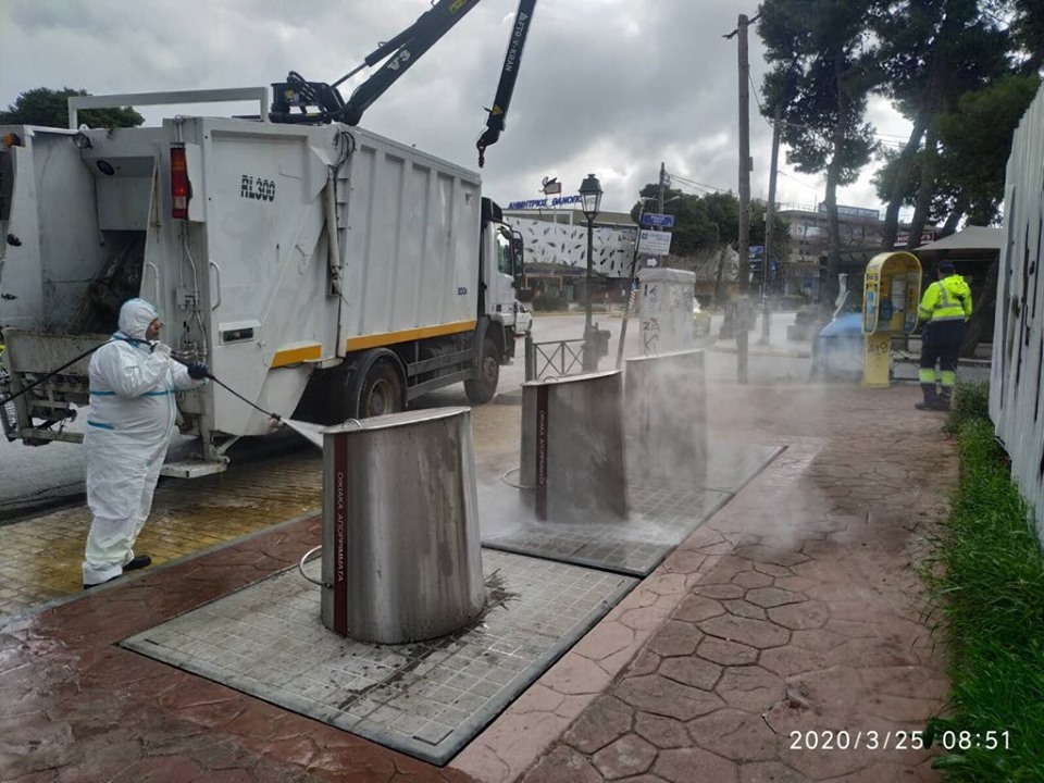 Οι απολυμάνσεις κάδων και χώρων περιμετρικά αυτών (δρόμος, πεζοδρόμιο) θα συνεχιστούν όλο το επόμενο διάστημα καθημερινά και σε διαφορετικές περιοχές του Δήμου μας.