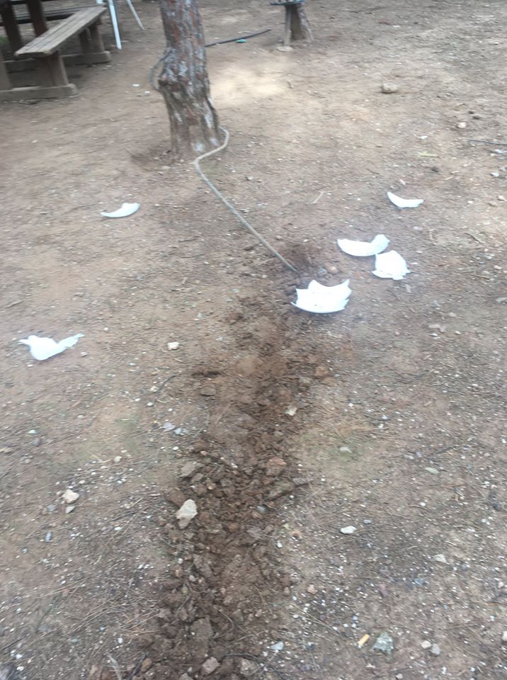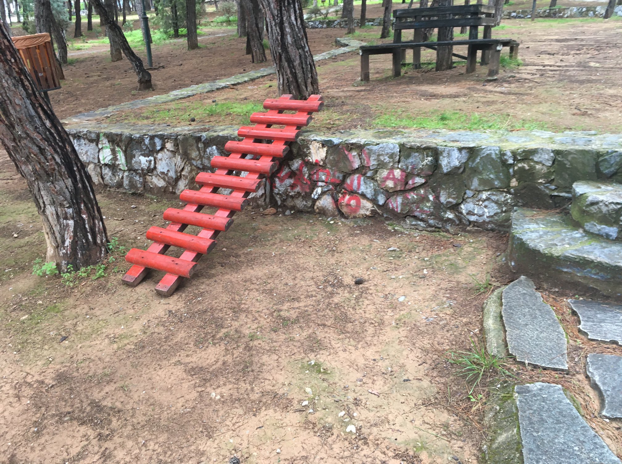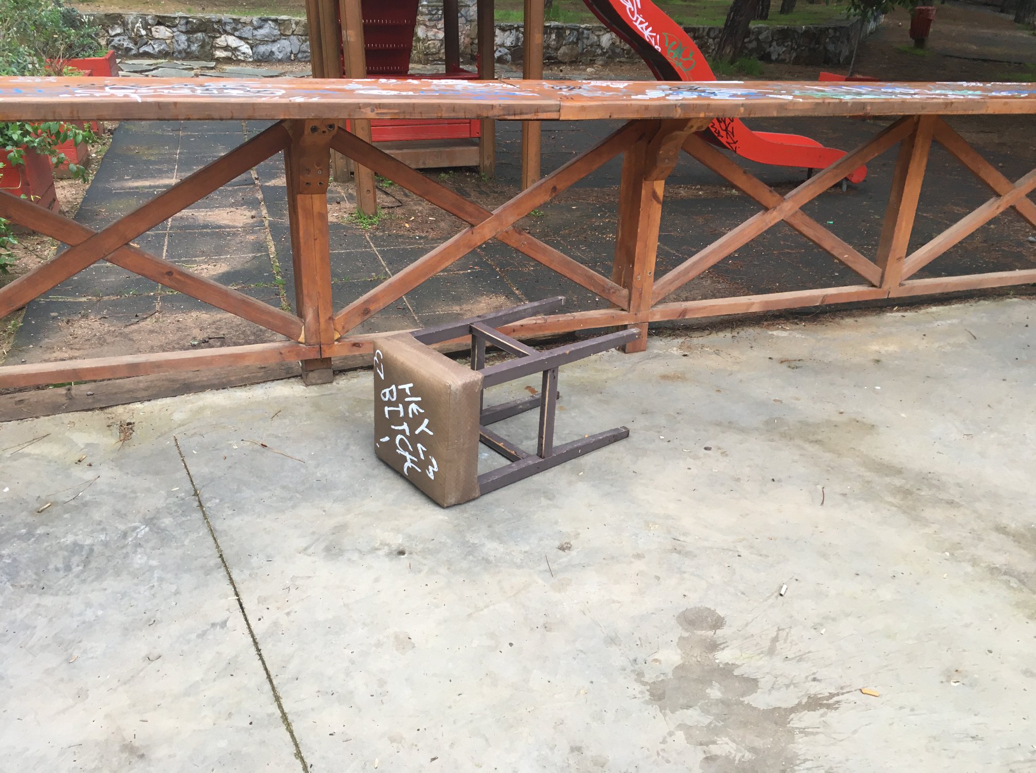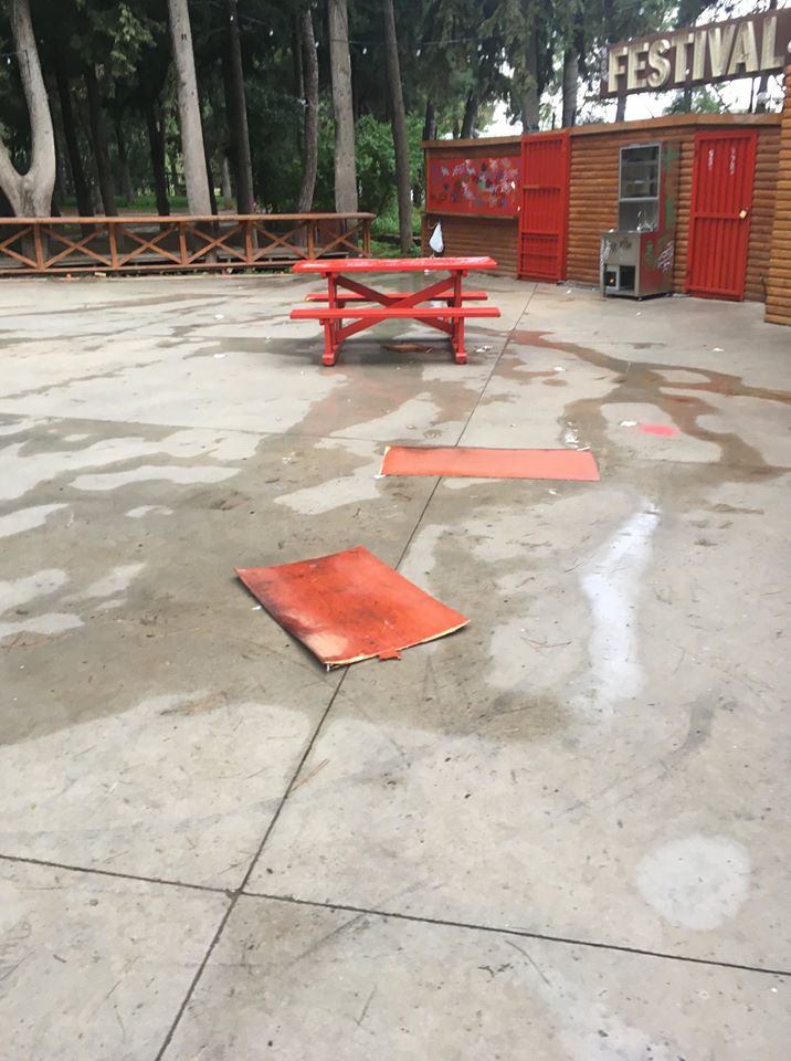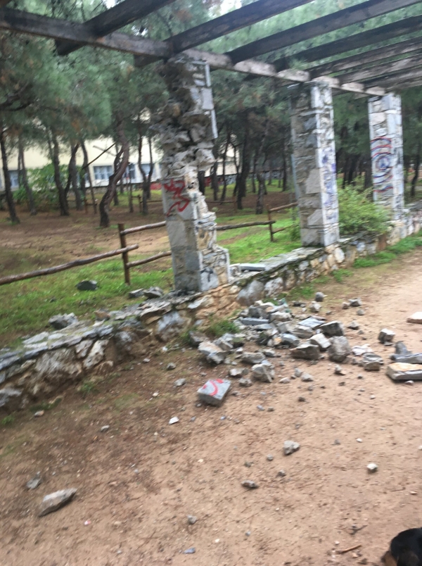 Ο Δήμαρχος προσκόμισε και το σχετικό φωτογραφικό υλικό από τους βανδαλισμούς που πραγματοποιήθηκαν στο πετρόχτιστο κιόσκι, εντός του Άλσους Χολαργού «Ανδρέας Παπανδρέου».