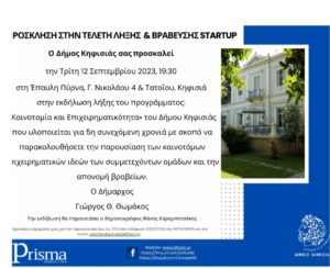 ΔΗΜΟΣ ΚΗΦΙΣΙΑΣ: ΤΕΛΕΤΗ ΛΗΞΗΣ ΚΑΙ ΒΡΑΒΕΥΣΗΣ STARTUP ΤΡΙΤΗ 12 /09/2023 19.30.