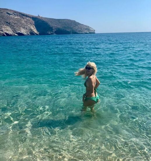 Μόλις ολοκλήρωσε τις τηλεοπτικές της υποχρεώσεις έφυγε με την οικογένειά της για το κυκλαδίτικο νησί, όπου περνάει μέρες ξεγνοιασιάς.