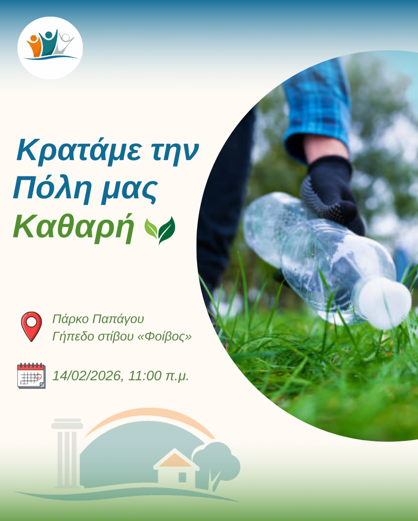 Η δράση θα πραγματοποιηθεί το Σάββατο 14 Φεβρουαρίου στις 11:00 π.μ., με σημείο συνάντησης το γήπεδο στίβου «Φοίβος», στο Πάρκο Στρατάρχου Αλεξάνδρου Παπάγου. Οι διοργανωτές απευθύνουν ανοιχτό κάλεσμα σε όλους όσοι επιθυμούν να συμβάλουν ενεργά στη διατήρηση μιας καθαρής και φιλικής πόλης.
