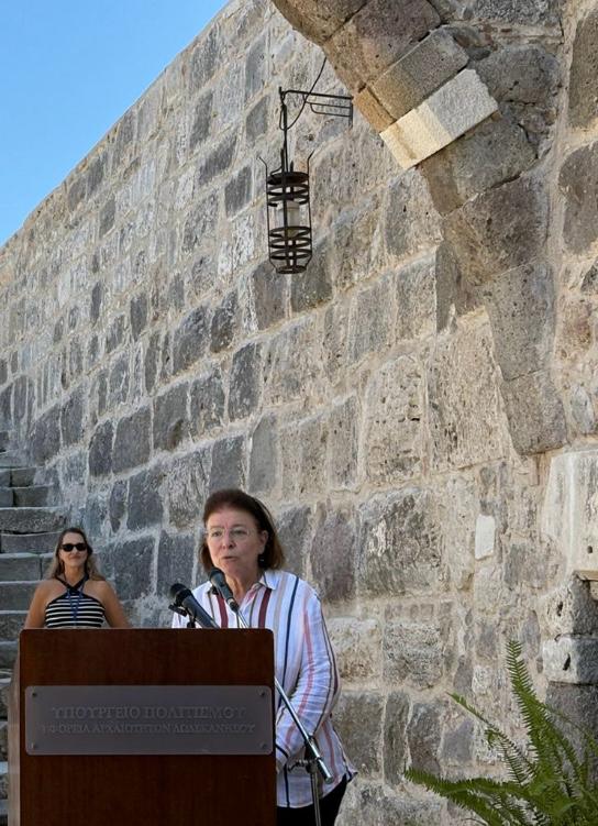 Η Υπουργός Πολιτισμού, Λίνα Μενδώνη, στο πλαίσιο επίσκεψης εργασίας στην Κω, τέλεσε τα εγκαίνια του έργου αποκατάστασης του Κάστρου της Νερατζιάς, το οποίο είχε υποστεί σοβαρές ζημιές από τους σεισμούς του 2017.