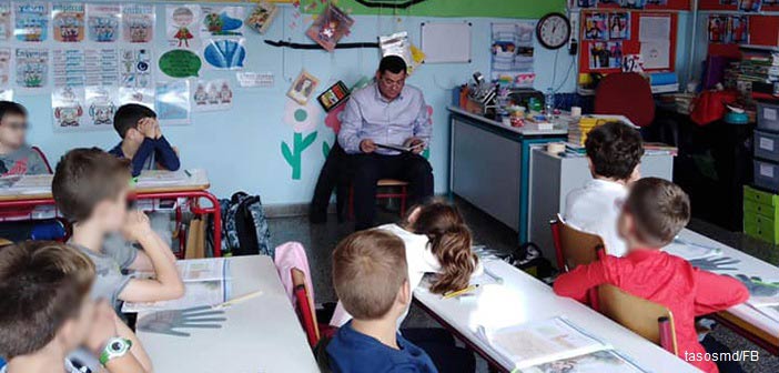 Πρωτομηνιά και ο δήμαρχος Λυκόβρυσης – Πεύκης αποφάσισε να αφιερώσει λίγη ώρα για να έρθει σε επαφή με τα «δευτεράκια» του 1ου Δημοτικού Σχολείου Λυκόβρυσης.