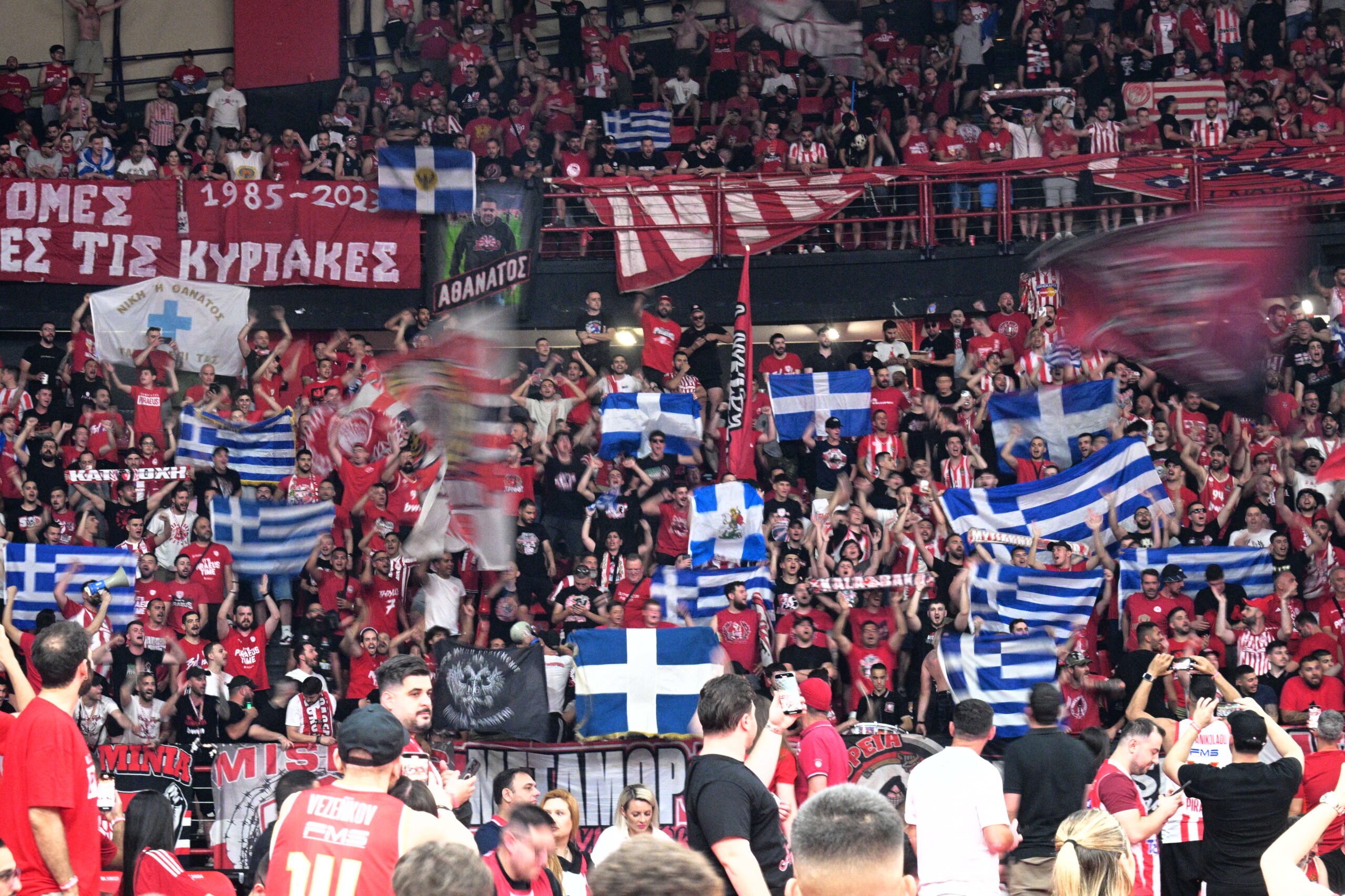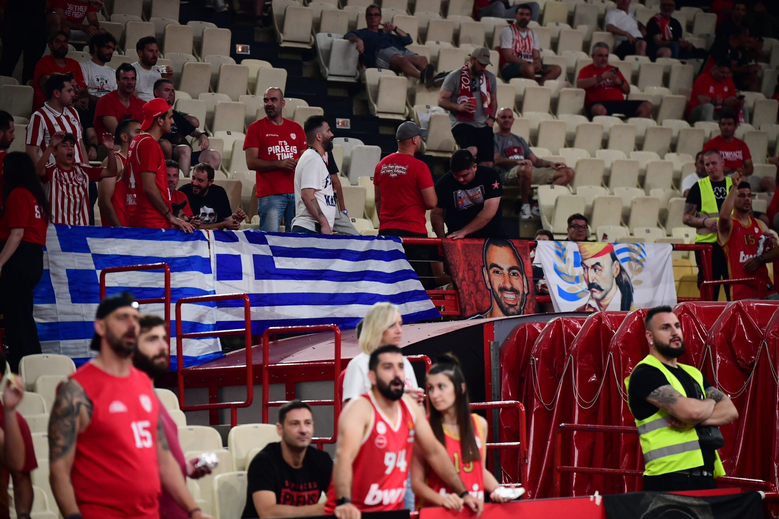 Η ατμόσφαιρα στο ΣΕΦ είναι ήδη φορτισμένη και ιδιαίτερα συμβολική, λίγο πριν το κρίσιμο Game 4 των τελικών της Stoiximan Basket League ανάμεσα στον Ολυμπιακό και τον Παναθηναϊκό.