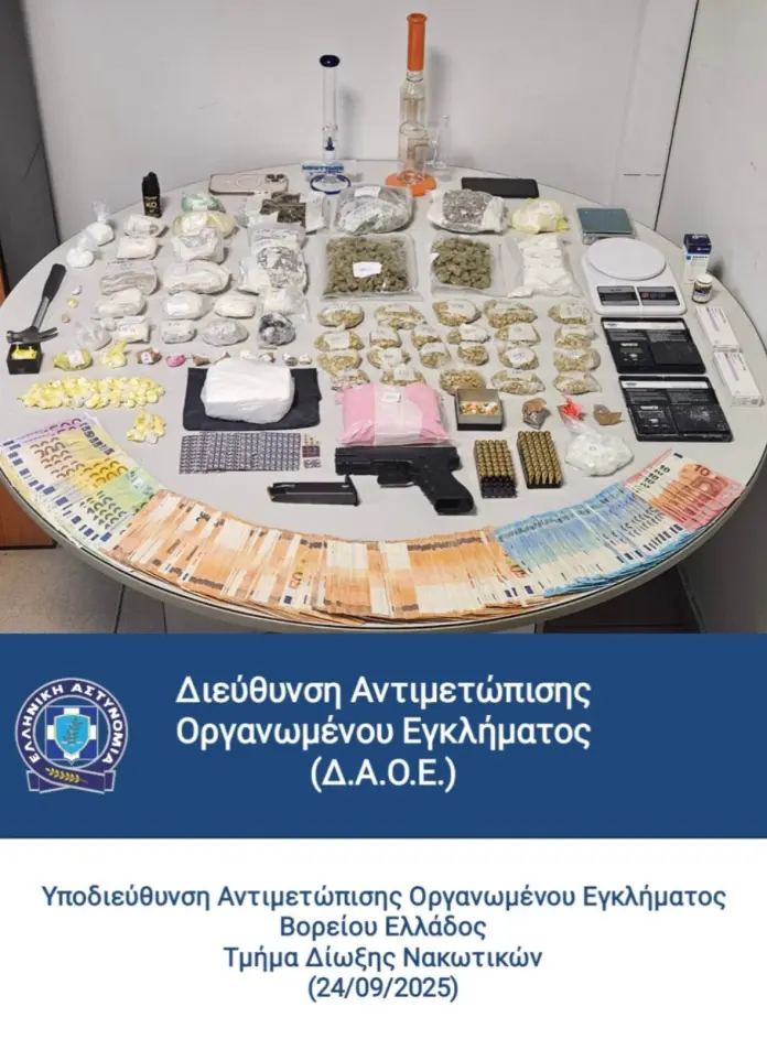 Στη Θεσσαλονίκη, αστυνομικοί της Υποδιεύθυνσης Αντιμετώπισης Οργανωμένου Εγκλήματος Βορείου Ελλάδος συνέλαβαν χθες, Τετάρτη 24 Σεπτεμβρίου 2025, έναν 47χρονο για παραβάσεις της νομοθεσίας περί ναρκωτικών και όπλων.