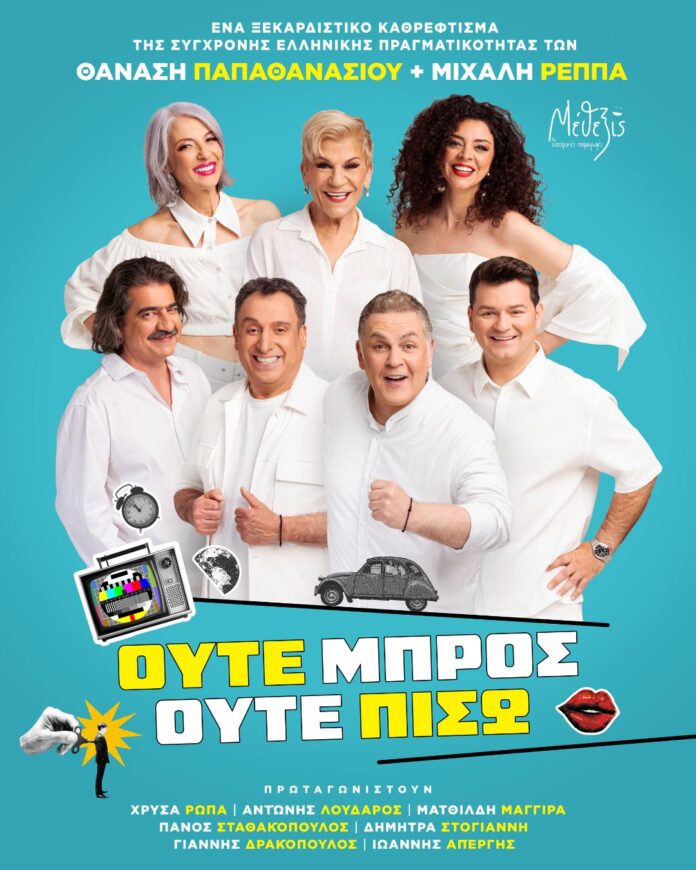 «Ούτε Μπρος ούτε Πίσω» Η νέα σατιρική κωμωδία του Θανάση Παπαθανασίου και του Μιχάλη Ρέππα για την παράνοια της καθημερινότητας ταξιδεύει σε όλη την Ελλάδα Πρεμιέρα περιοδείας στην Αττική: 26 Ιουνίου 2025 |