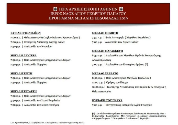 Δείτε το πρόγραμμα της Μεγάλης Εβδομάδας στον Ιερό Ναό Αγίου Γεωργίου στο Παπάγου.